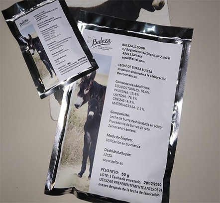 La Leche de burra deshidratada en polvo de 50gr, obtenida de burras de Raza Zamorano-Leonesa